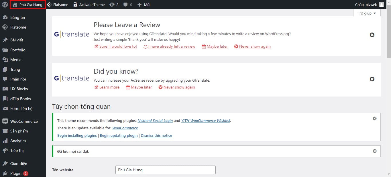 – Giao diện quản trị sau khi đăng nhập tài khoản & mật khẩu do BIV cung cấp:
