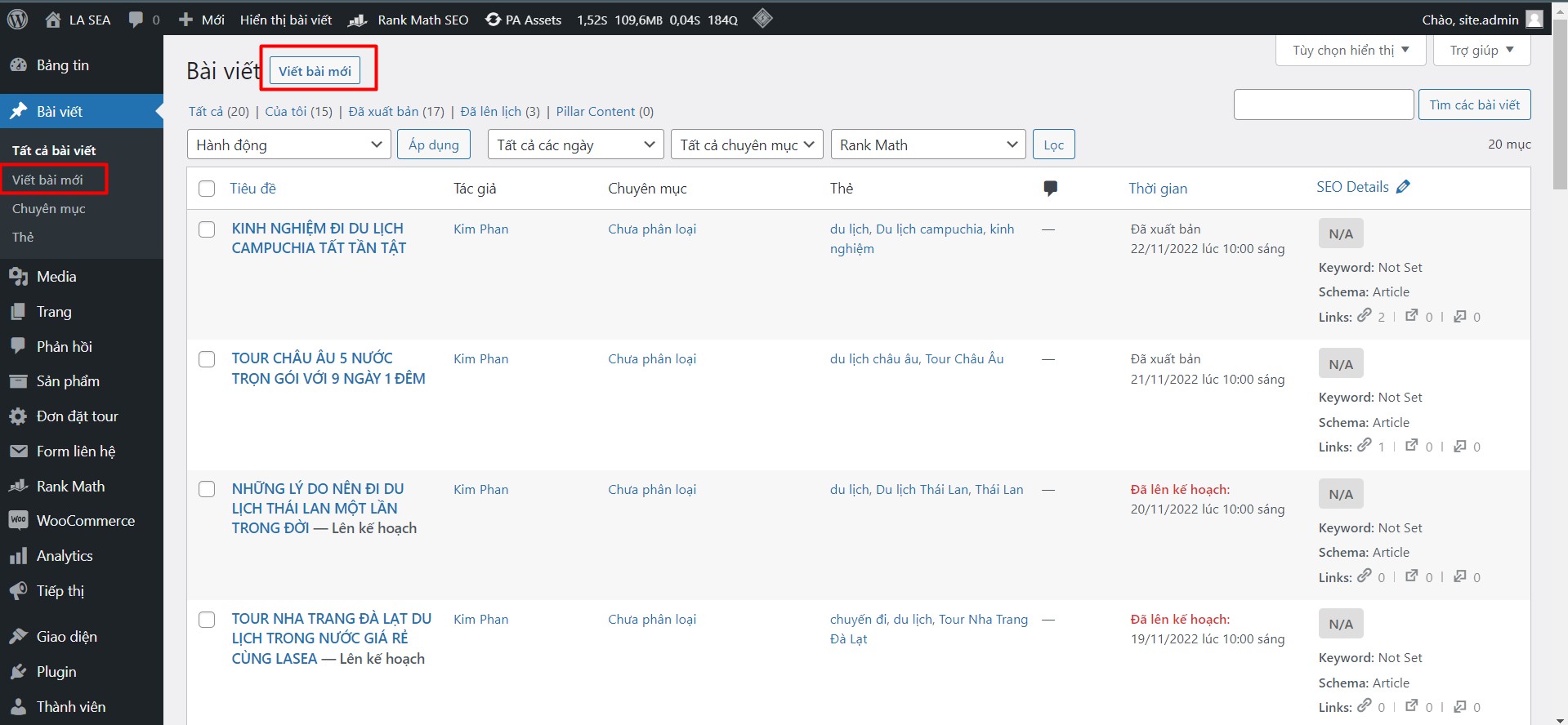 – Tại giao diện Tất cả bài viết -> chọn Viết bài mới ở 1 trong 2 vị trí như ảnh bên dưới: