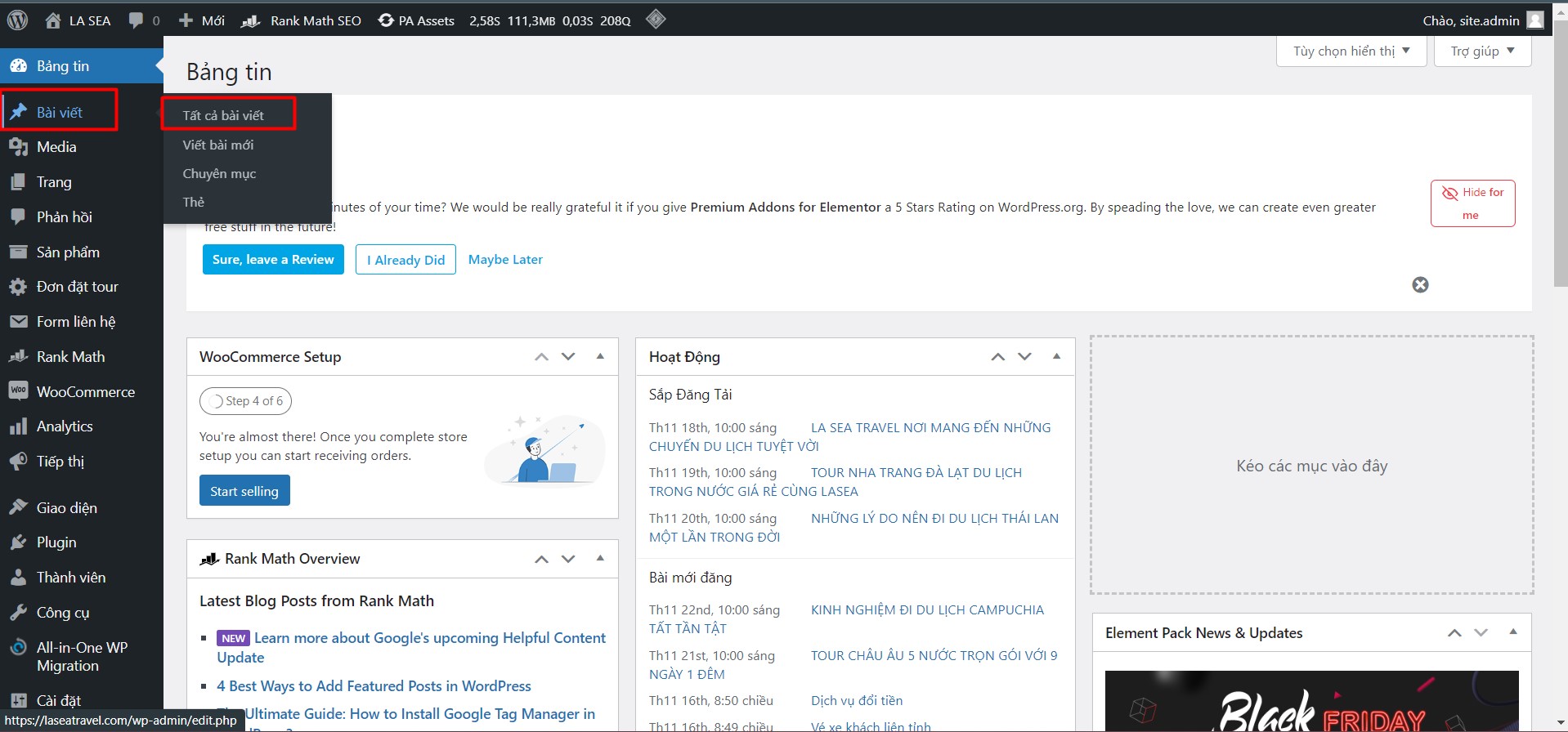 – Tại giao diện Trang quản trị, di chuột vào mục Bài Viết -> chọn Tất cả bài viết